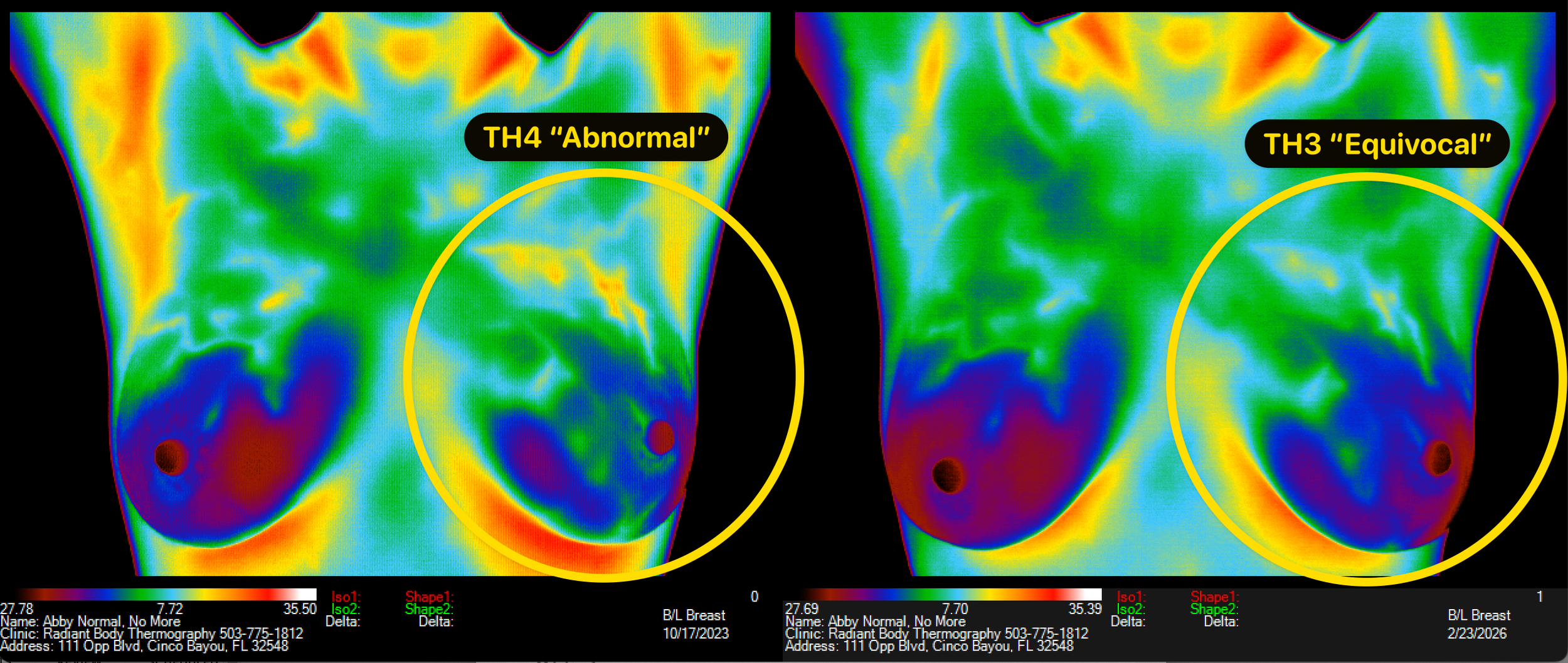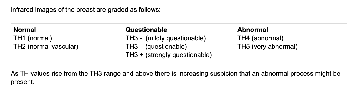 EQUIVOCAL is the medical term for TH3 Group which means not normal but not abnormal either, 95% probability of not being pathology/disease, yet the group of women who were involved in designing Dr. Amalu’s reports did not like the word “equivocal” because they’d not heard of it so “Questionable” was substituted. Not a great choice in my opinion as the technician because gets people unnecessarily excited.